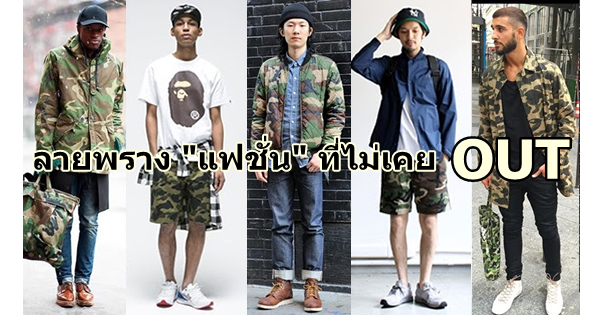 น่าจะพูดได้อย่างเต็มปากเต็มคำว่า เสื้อผ้าลายทหาร เป็นแฟชั่นที่ไม่มีเอาท์ เพราะไม่ว่าจะเข้าสู่ยุคสมัยไหนเสื้อผ้าลายพรางนี้ก็ไม่เคยทำให้ผู้ชายที่อยากได้ลุคดิบ ๆ เท่ ๆ ต้องผิดหวัง สังเกตได้ว่าช่วงพักนี้หรือพักไหนมีการนำแฟชั่นแบบนี้ขึ้นมาใส่กันเรื่อยๆ ซึ่งเสื้อผ้าลวดลายดังกล่าวไม่จำเป็นที่จะต้องเป็นลายพรางตาเลยซะทีเดียว อาจเป็นเสื้อผ้าที่มีสีเขียว สีน้ำตาล สีน้ำเงิน เป็นสีพื้น ที่คล้ายกับสีชุดของทหารแต่ละประเภทก็ได้ ซึ่งวันนี้เรานำเสนอไอเทมลายพราง ตั้งแต่หัวจรดเท้ามาแนะนำให้ทราบกันครับ