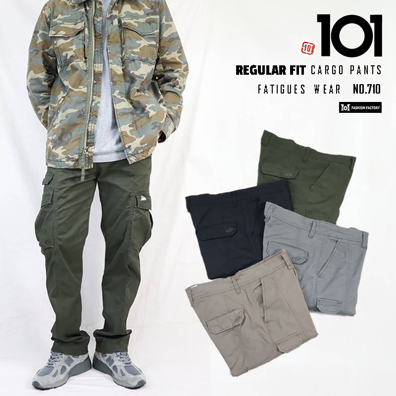 กางเกงคาร์โก้ US101 NO.710 ทรงครงกระบอกธรรมดา REGULAR FIT ผ้ายืดคอตตอน โดดเด่นด้วยดีไซน์เดินตะเข็บข้าง 3 ช่อง